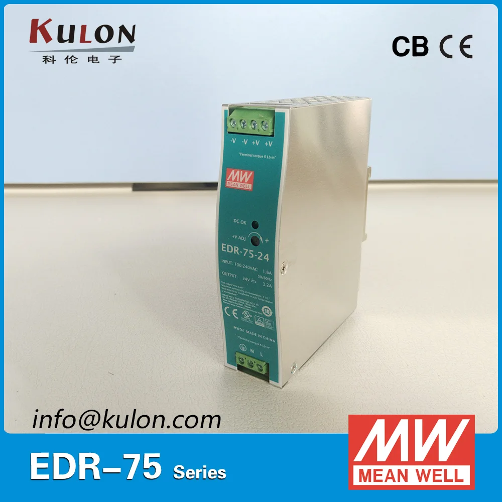 Mejor Monofásica AC/DC 76.8 W 24 V 3.2A EDR-75-24 Original Meanwell Industrial Carril DIN fuente de Alimentación ofrece