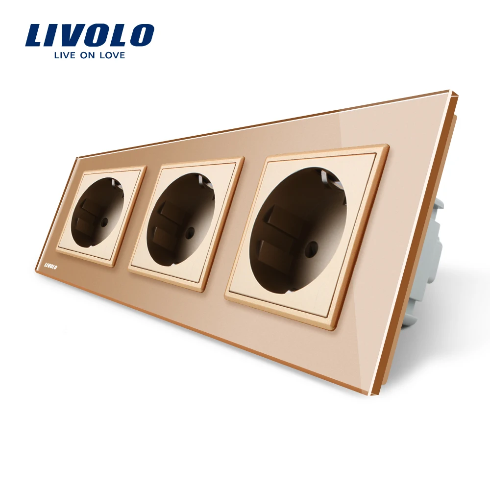 Barato Livolo Estándar de LA UE Del Zócalo, oro Cristal de Vidrio Templado Panel de Toma de Corriente, Triple Enchufes De Energía Sin Enchufe, VL-C7C3EU-13 ofrece