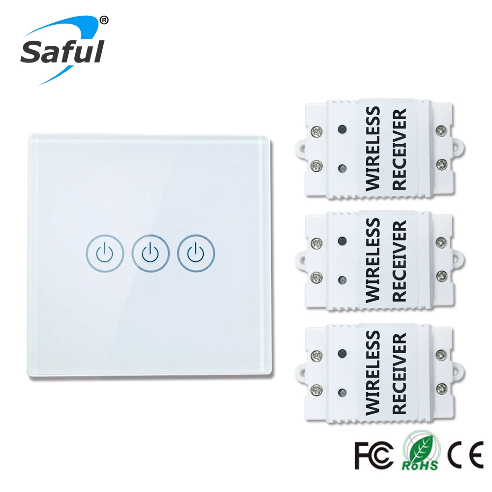 dónde podemos En realidad comprar Saful Wireless touch switch 3 Gang 3 Way Smart Home 220 v Interruptor Ligero Casero larga Interruptor de Pared control remoto