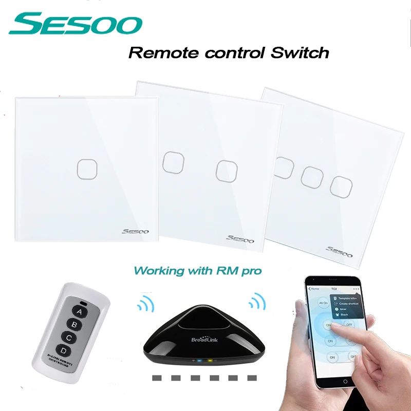 Bien SESOO EU/UK Estándar 1/2/3 Banda de Control Remoto Inalámbrico de Pared Interruptor de La Luz, blanco Cristal Touch Panel Interruptor de Casa Inteligente ofrece