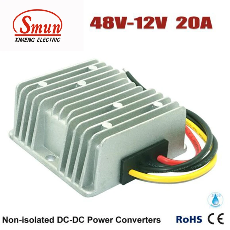 Mejor SMUN Impermeable DC DC Step-down Convertidor Reductor Buck Módulo de 48 V a 12 V 20A Potencia de Carrito de Golf convertidor Regulador ofrece